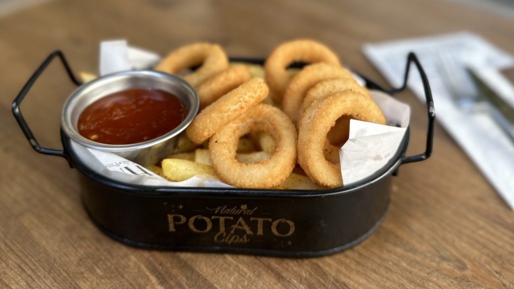 8 Adet Soğan Halkası,Patates Kızartması ve el yapımı dip soslar ile servis edilir.