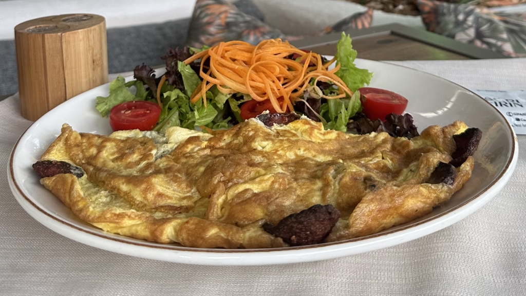 Mantar, Kaşar Peyniri, Yumurta, Yeşillik ile Servis Edilir.