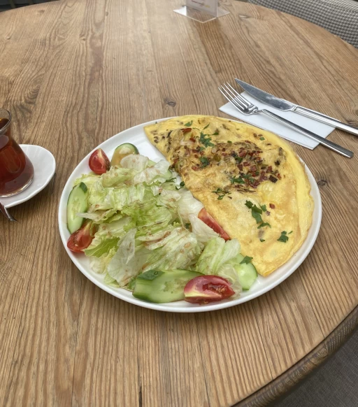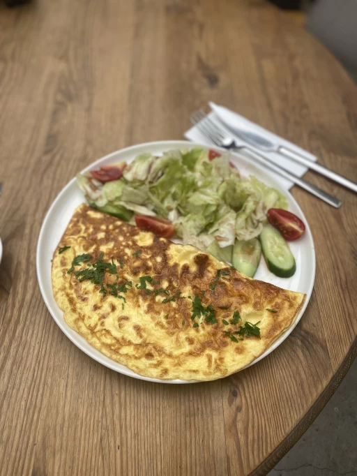 Beyaz Peynir veya Kaşar Peyniri Seçenekleriyle, Yumurta, Yeşillik ile Servis Edilir.
