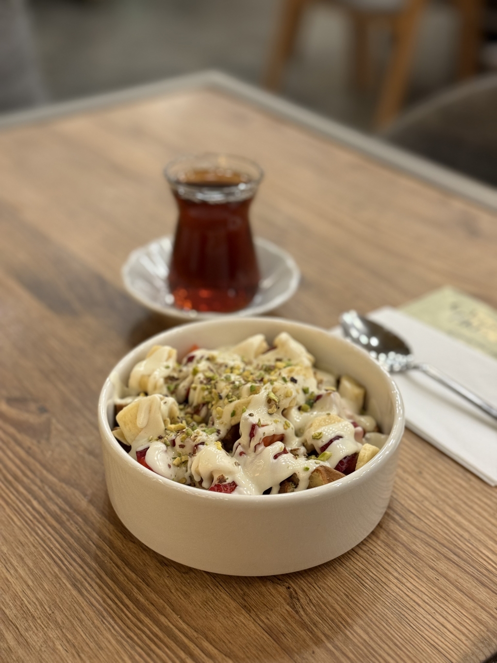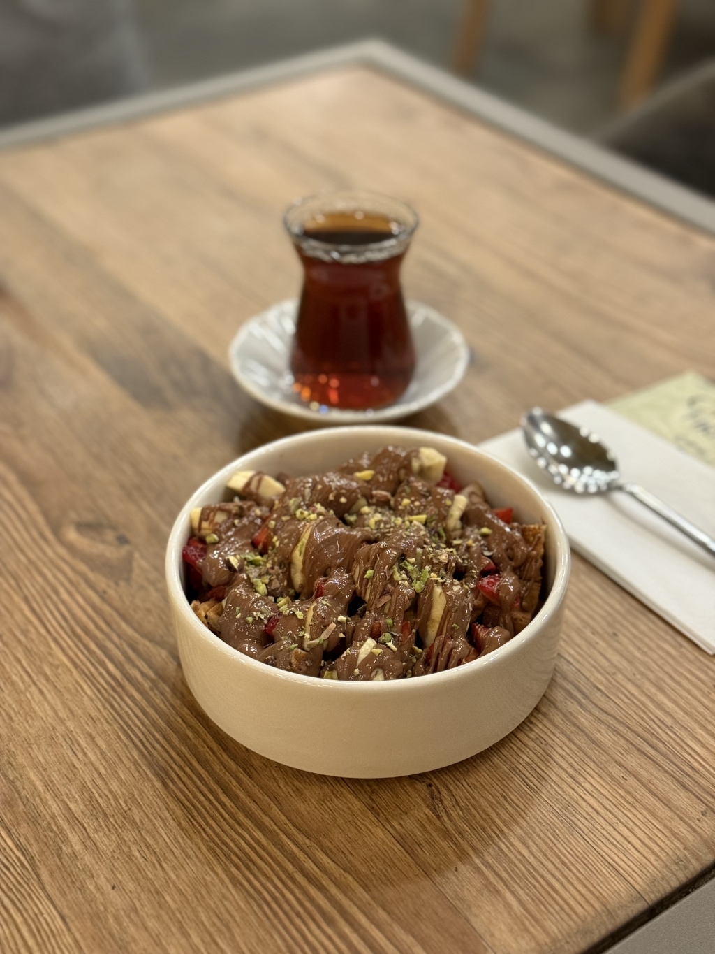 Tereyağlı kendi yapımımız Kruvasanımızı,Belçika çikolatası ve meyve ile servis edilir.