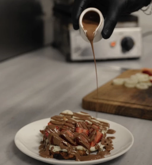 Waffle üzerine servis edilir.